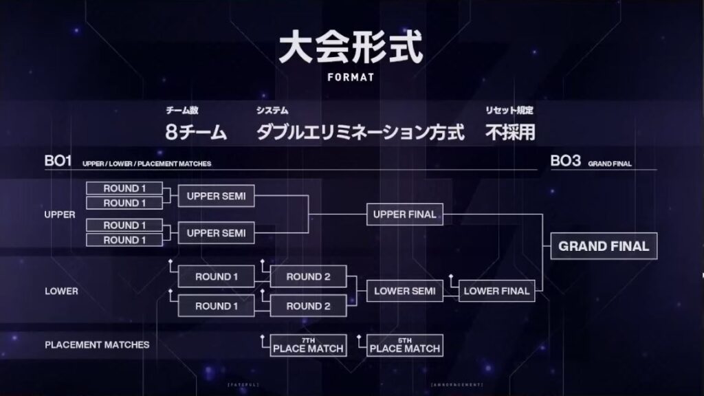 GRAND FINAL:UPPER FINALの勝利チームがマップ使用順の選択権を得る