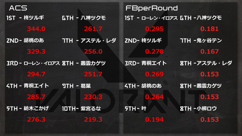 今回は表題大会について、スクリムのDAY3結果と、様々な成績をまとめました。